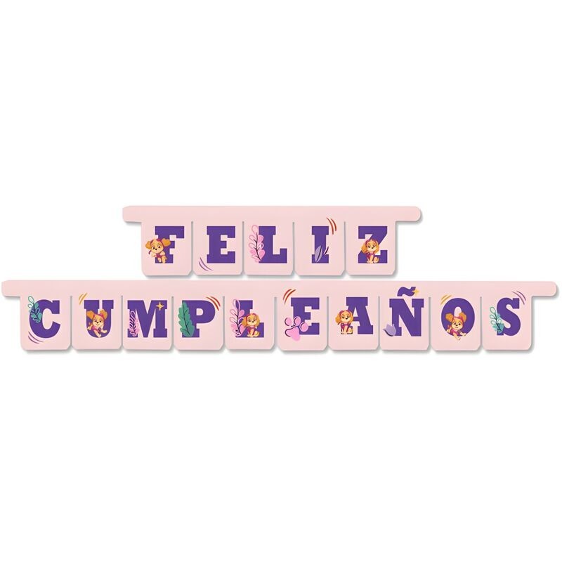 Letrero feliz cumpleaños patrulla canina rosa 3 metros