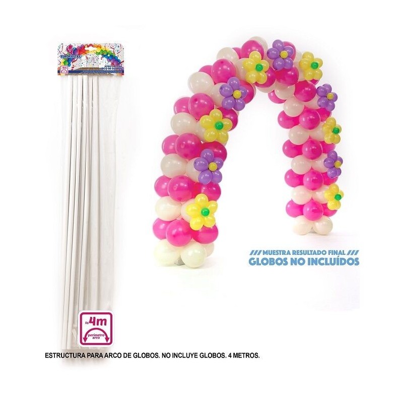 Estructura arco de globos 3 metros, incluye 8 varillas con conectores y dos bases pequeñas con pega para el suelo (se recomienda reforzar base)