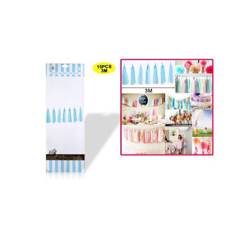Guirnalda flecos azules 3 metros 15 pz 8800884035370 403537