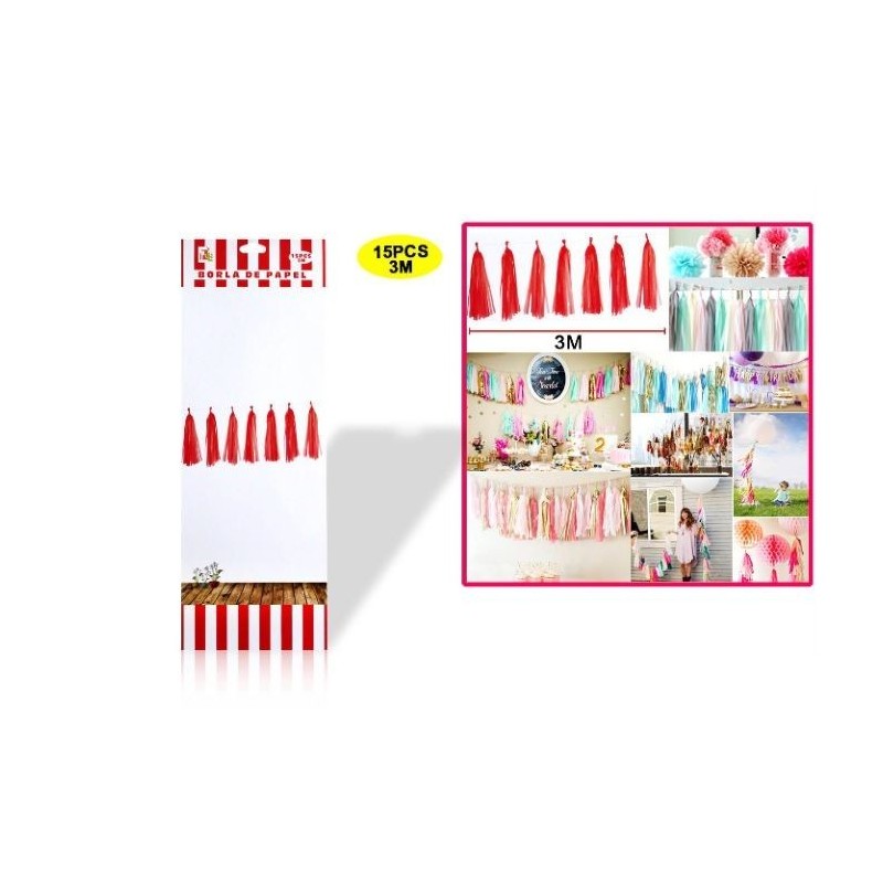 Guirnalda flecos roja 3 metros 15 pz 8800884035387 403538