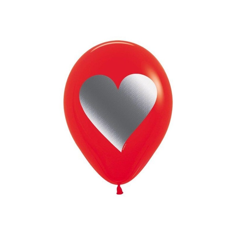 Globos rojos corazon plata metalico 12 uds 30 cm