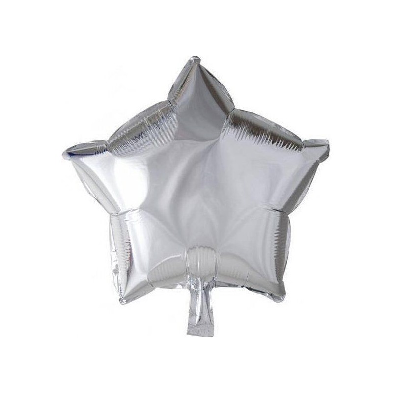 Globo estrella de color plata de 45 cm de diametro ,se puede hinchar con helio. Consumo de Helio: 0,0170m3 (helio no incluido en el precio) Tiempo de Flotacion con Helio: 3-4 Días Aproximadamente Valvula de autocierre: si Todos nuestros globos se venden s
