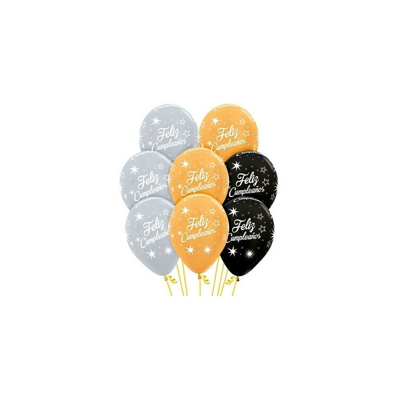Globo feliz cumpleanos oro plata y negro 6 uds 7703340133263 R12 CUMD