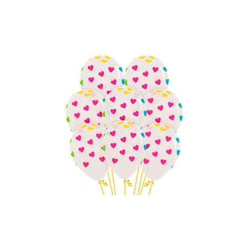 Globos transparentes con corazones colores 12 uds 30 cm 7703340135076 R12 CORNT