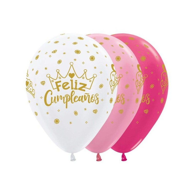 Globos cumpleanos coronas 12 uds 30 cm 7703340163611 R12 CUMCOR