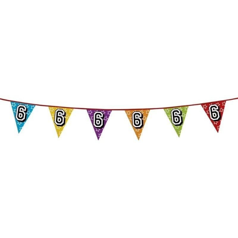 Guirnalda barata de cumpleaños Nº 6, 8 metros holografica de banderin triangular