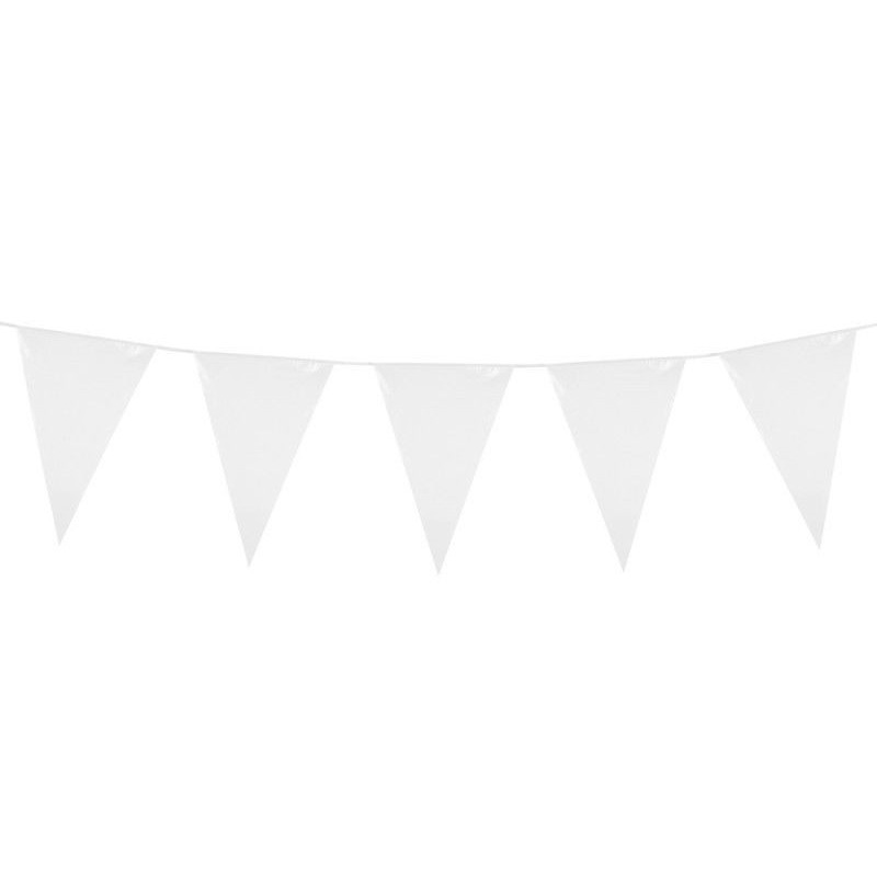 Banderin triangular blanco de 10 metros plastico, banderines y guirnaldas para decoracon de fiestas y eventos y cumpleaños