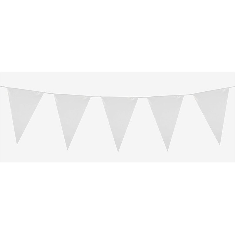 Banderin triangular blanco de 10 metros plastico, banderines y guirnaldas para decoracon de fiestas y eventos y cumpleaños