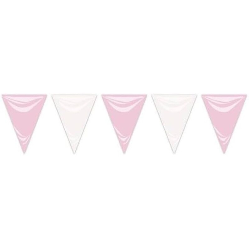 Banderin triangular rosa y blanca 25 metros 8422935601770 60177