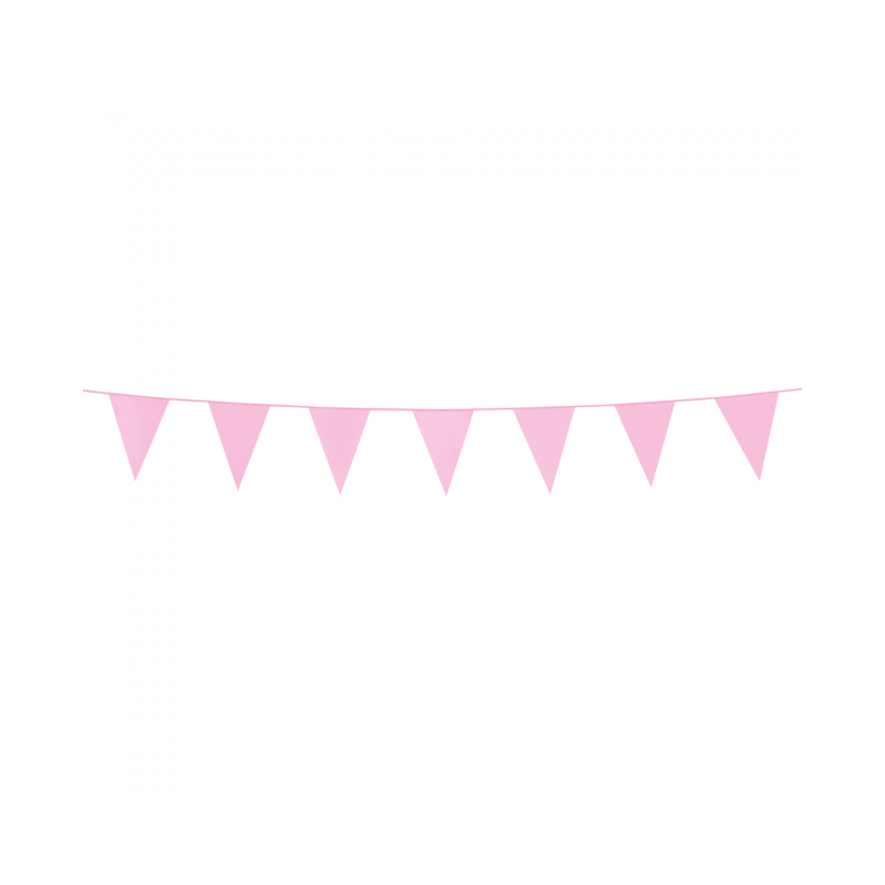 Guirnalda de 3 metros de banderas triangulares de plástico de color rosa. Cada bandera tiene un tamaño de 10x15cm. Cada paquete contiene 1 guirnalda.