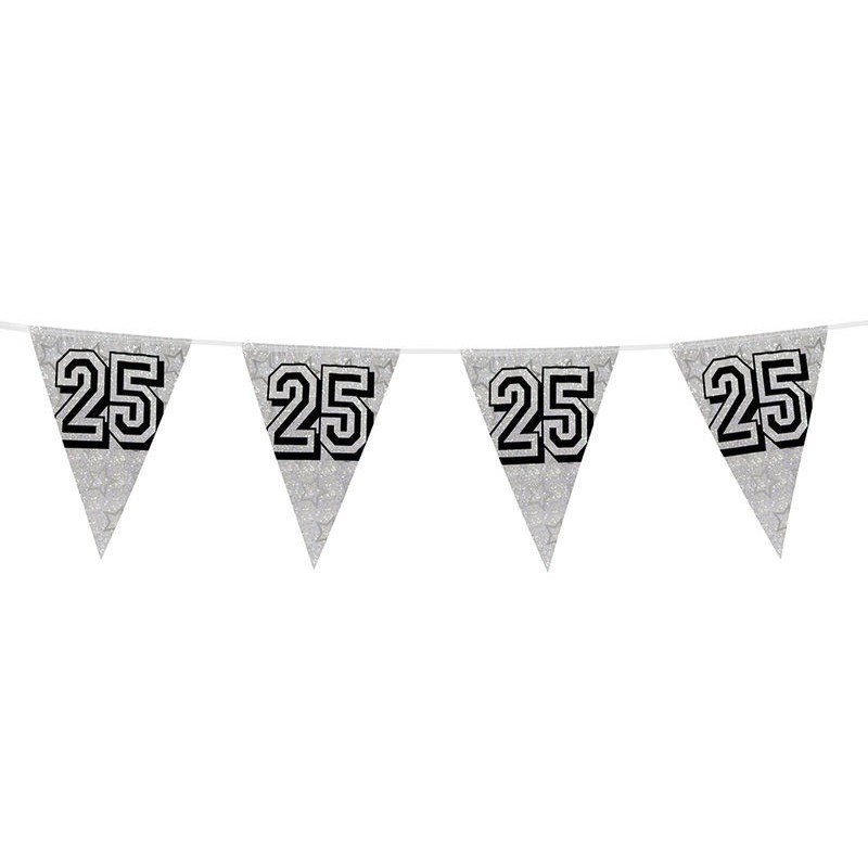Guirnalda triangular plata para 25 aniversario o 25 años, medidas 8 metros de largo. Guirnaldas y banderines para decoracion de fiestas baratas