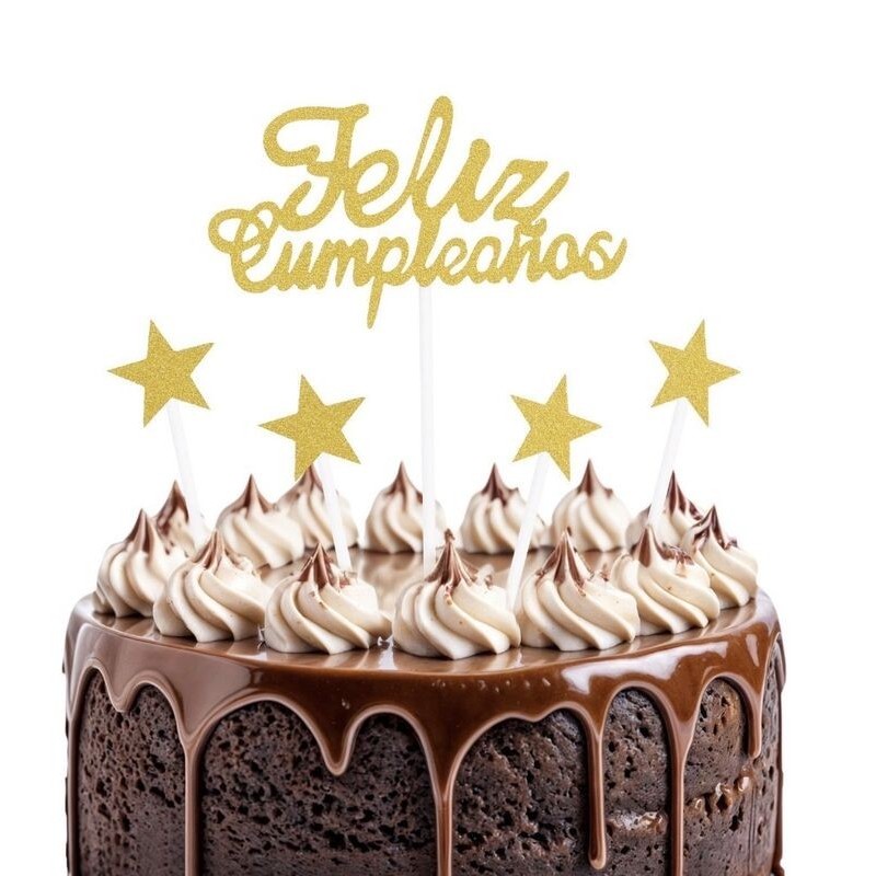 Topper tarta Feliz Cumpleaños estrellas 5 pc